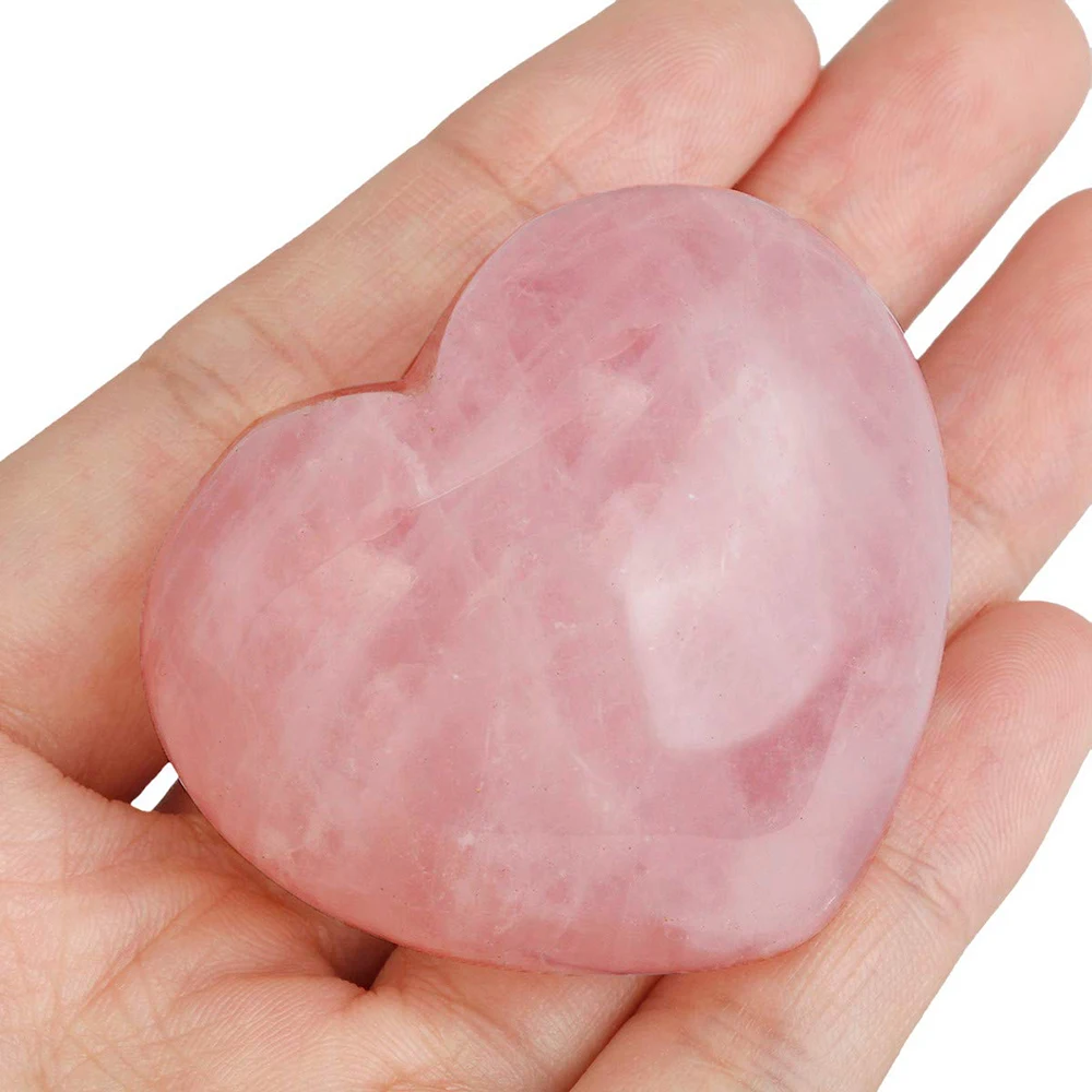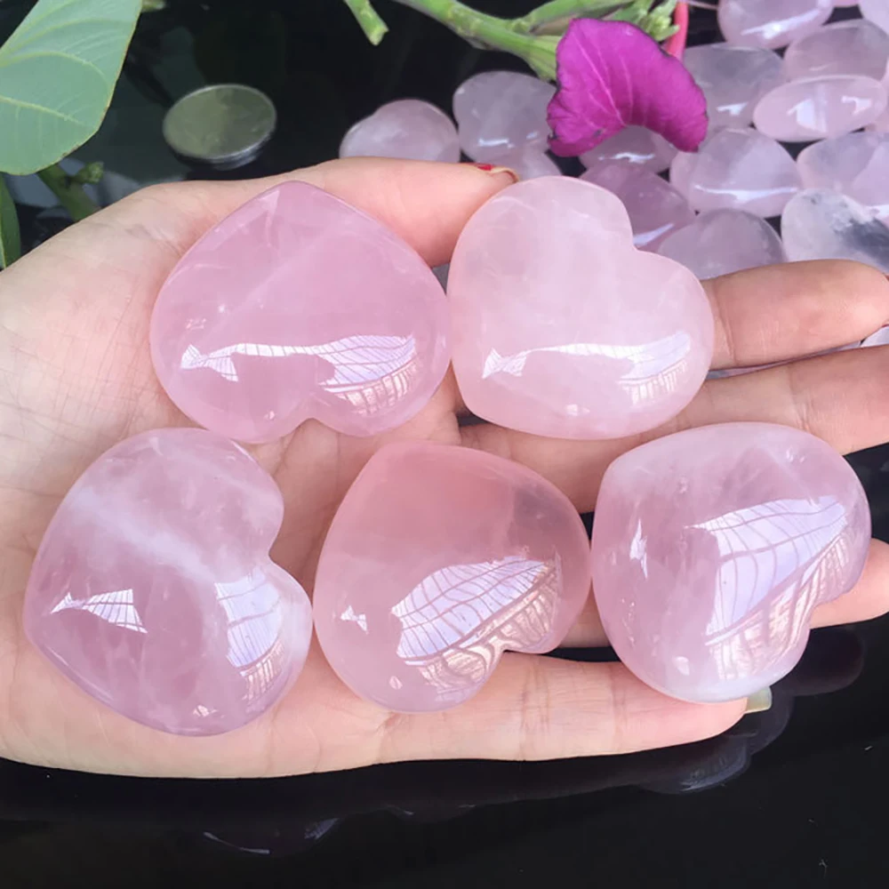 Natural Crystal Stone Love Heart Shape Big Heart Quartz Carving Reiki Healing Rose Quartz Love Crystal Decoration Crafts 40-50mm